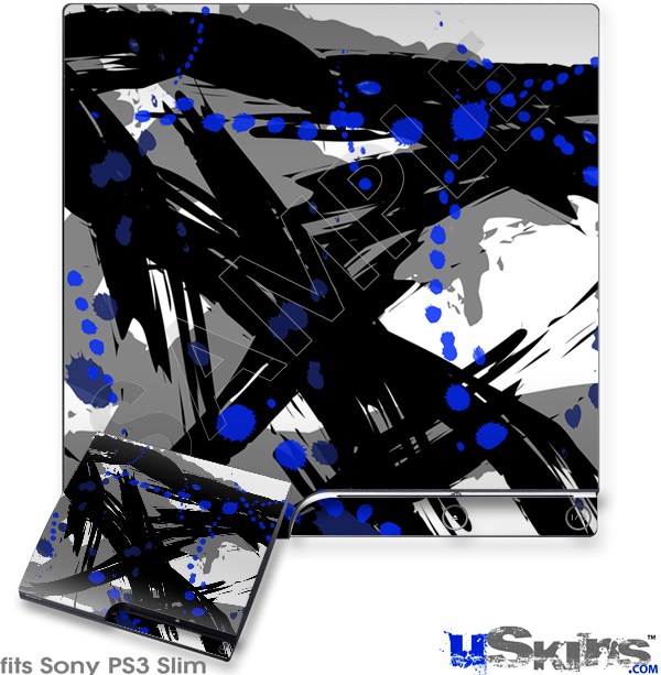 Decal Skin compatible with Sony PS3 Slim Abstract 02 Blue