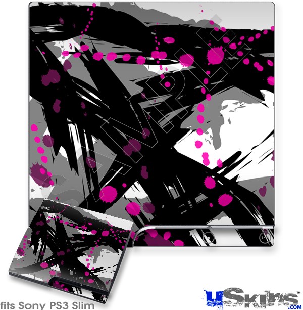 Decal Skin compatible with Sony PS3 Slim Abstract 02 Pink