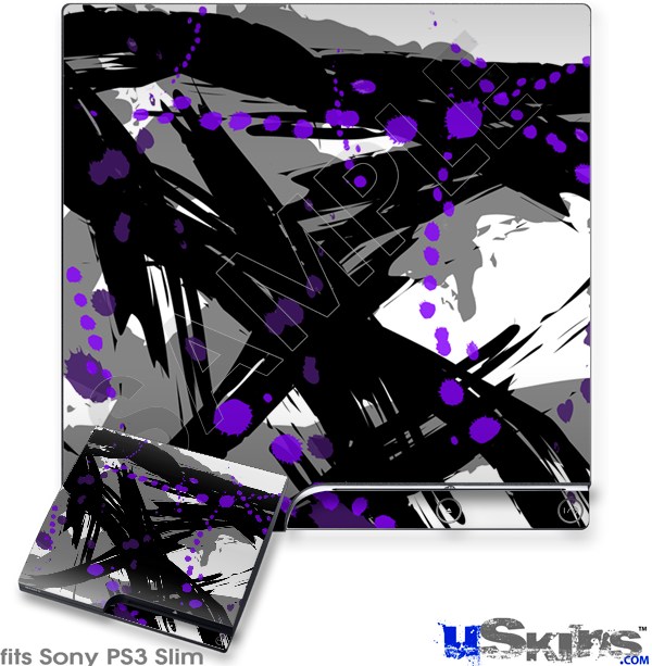 Decal Skin compatible with Sony PS3 Slim Abstract 02 Purple