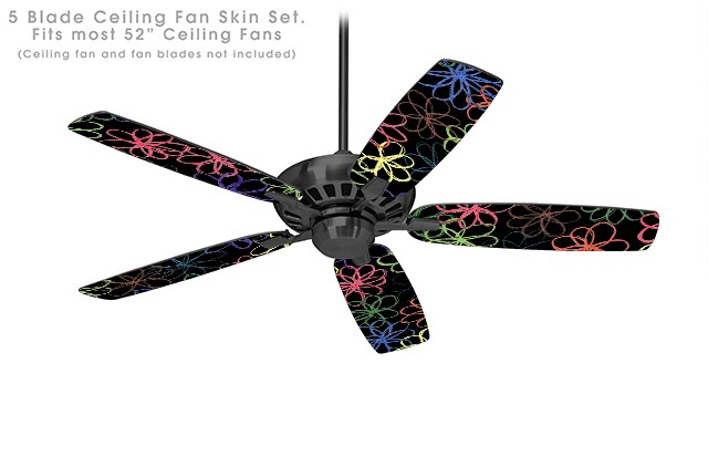 Kearas Flowers on Black - Ceiling Fan Skin Kit fits most 52 inch fans (FAN and BLADES SOLD SEPARATELY)
