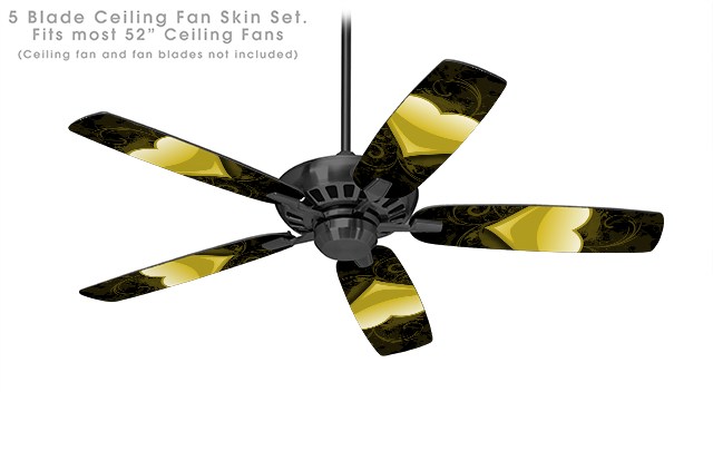 Glass Heart Grunge Yellow - Ceiling Fan Skin Kit fits most 52 inch fans (FAN and BLADES SOLD SEPARATELY)