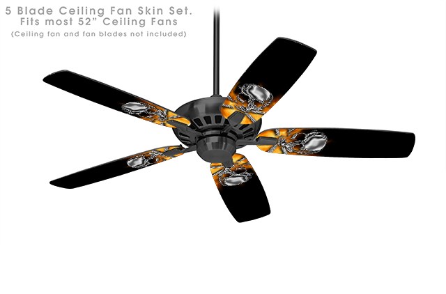 Chrome Skull on Fire - Ceiling Fan Skin Kit fits most 52 inch fans (FAN and BLADES SOLD SEPARATELY)