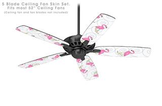 Flamingos on White - Ceiling Fan Skin Kit fits most 52 inch fans (FAN and BLADES SOLD SEPARATELY)