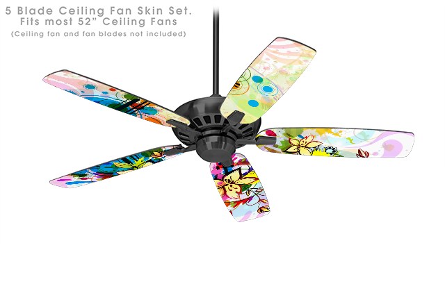 Floral Splash - Ceiling Fan Skin Kit fits most 52 inch fans (FAN and BLADES SOLD SEPARATELY)