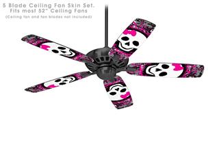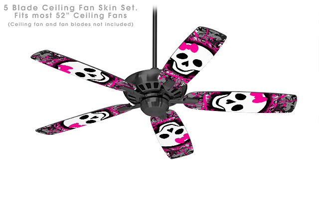 Splatter Girly Skull - Ceiling Fan Skin Kit fits most 52 inch fans (FAN and BLADES SOLD SEPARATELY)