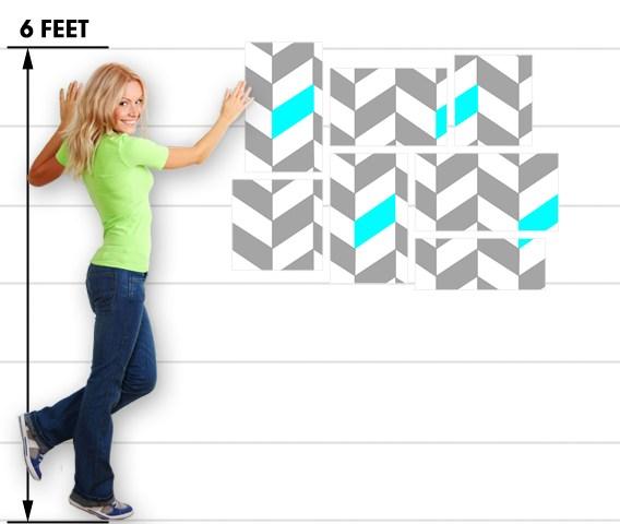 Chevrons Gray And Aqua - 7 Piece Fabric Peel and Stick Wall Skin Art (50x38 inches)