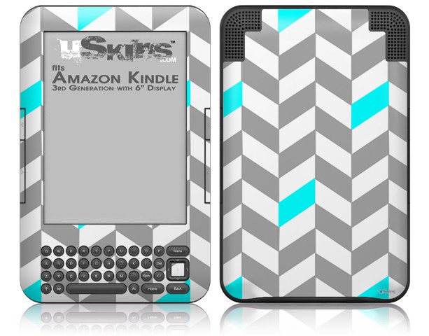 Chevrons Gray And Aqua - Decal Style Skin fits Amazon Kindle 3 Keyboard (with 6 inch display)