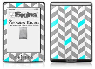 Chevrons Gray And Aqua - Decal Style Skin (fits 4th Gen Kindle with 6inch display and no keyboard)