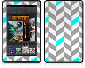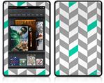 Amazon Kindle Fire (Original) Decal Style Skin - Chevrons Gray And Aqua