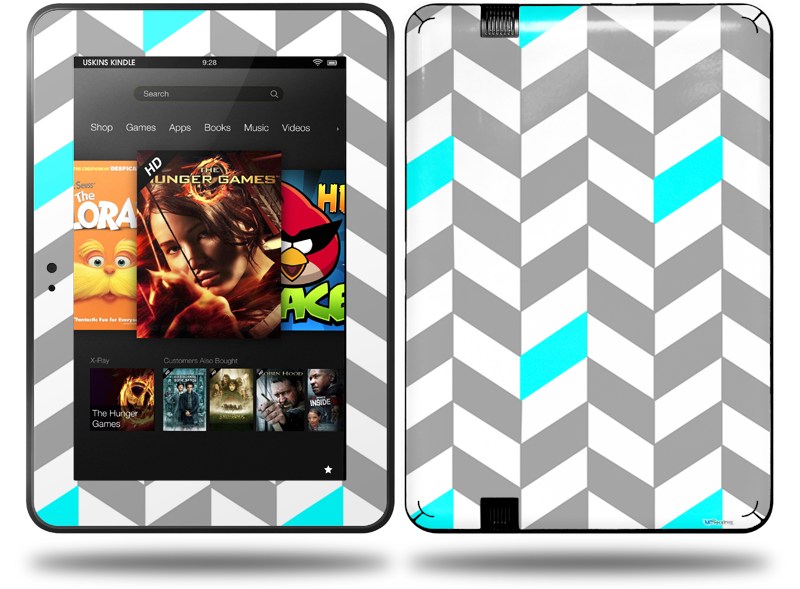Chevrons Gray And Aqua Decal Style Skin fits Amazon Kindle Fire HD 8.9 inch