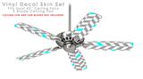 Chevrons Gray And Aqua - Ceiling Fan Skin Kit fits most 42 inch fans (FAN and BLADES SOLD SEPARATELY)