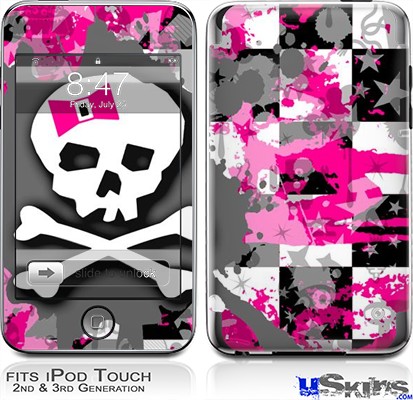 iPod Touch 2G & 3G Skin - Girly Pink Bow Skull