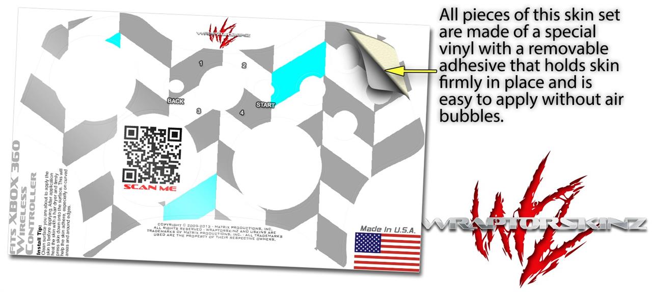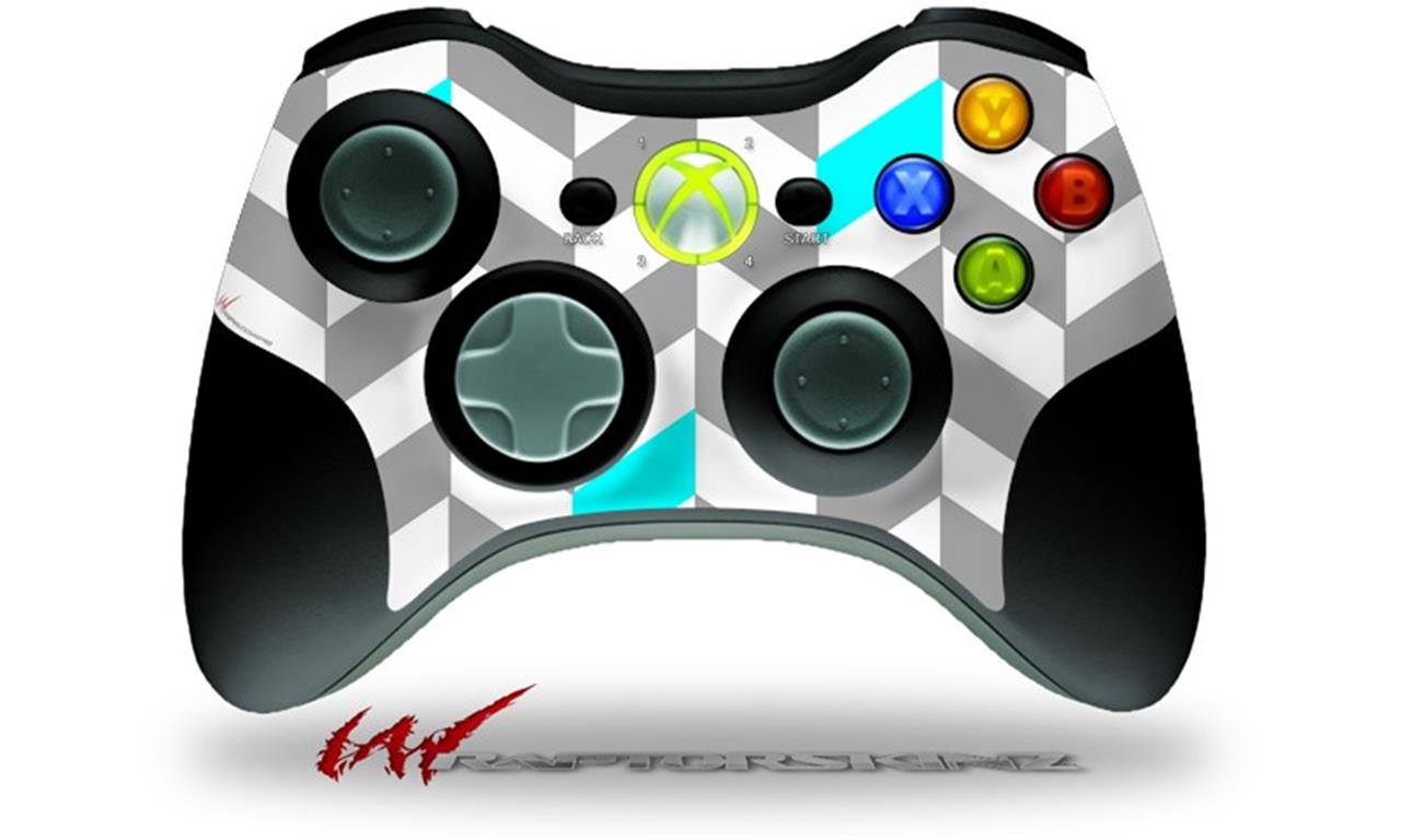 XBOX 360 Wireless Controller Decal Style Skin - Chevrons Gray And Aqua (CONTROLLER NOT INCLUDED)