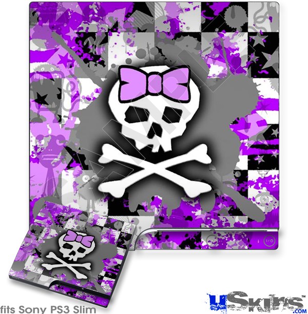 Decal Skin compatible with Sony PS3 Slim Purple Princess Skull