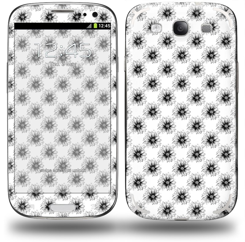 Kearas Daisies Black on White - Decal Style Skin (fits Samsung Galaxy S III S3)