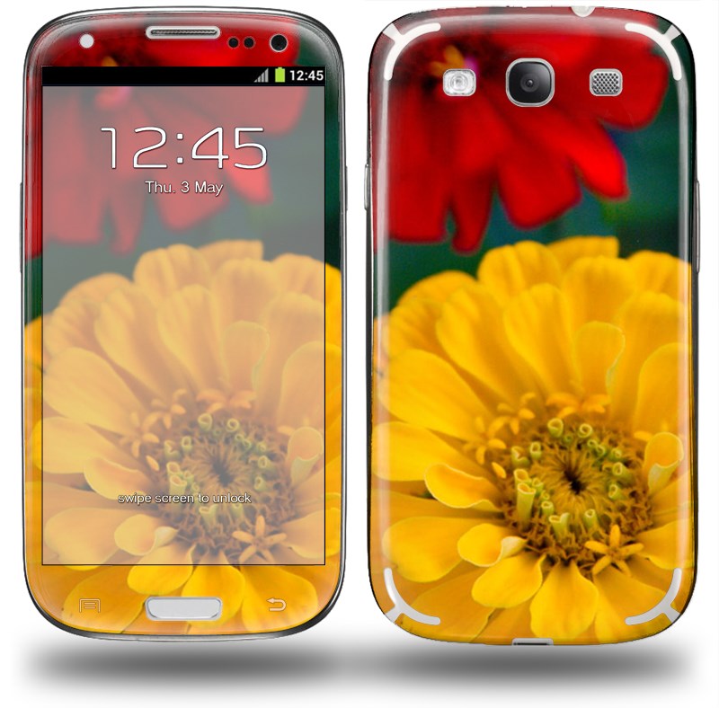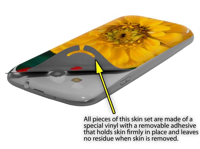 • Decal style vinyl skin covers front and back of Samsung Galaxy S III S3 phone.