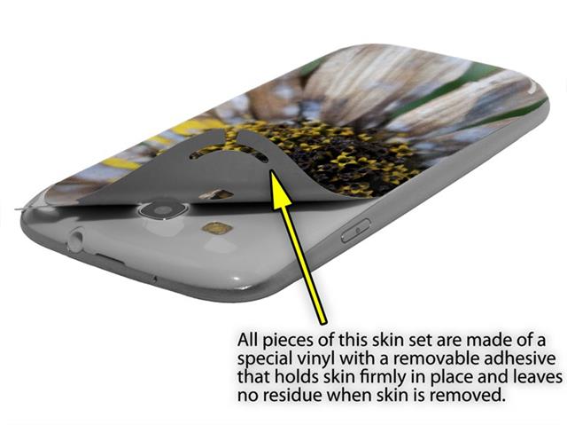 • Decal style vinyl skin covers front and back of Samsung Galaxy S III S3 phone.