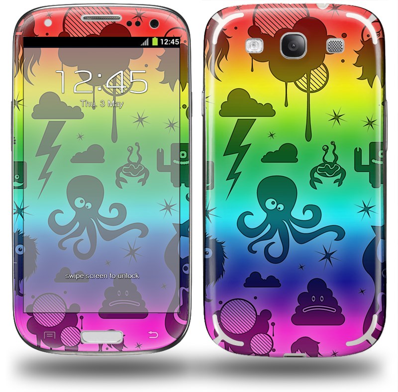 Cute Rainbow Monsters - Decal Style Skin (fits Samsung Galaxy S III S3)
