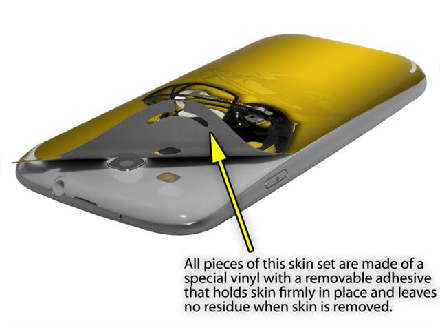 • Decal style vinyl skin covers front and back of Samsung Galaxy S III S3 phone.