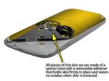 uSkins™ are self adhering vinyl skins that help prevent scratches and look great doing it. Unlike bulky silicon, plastic or metal cases and faceplates, uSkins are designed to be thin and very tough. uSkins are a composite of two layers of commercial grade materials. The bottom layer is a soft, flexible vinyl with a special removable adhesive that is easily positioned, applied without air bubbles, and effortlessly removed without leaving a sticky residue. Next we print the bottom layer with UV protected, fade resistant inks that deliver superb photo quality designs in vibrant colors. Finally we bond a professional grade laminate over the entire skin adding a glossy protective finish.
