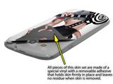 uSkins™ are self adhering vinyl skins that help prevent scratches and look great doing it. Unlike bulky silicon, plastic or metal cases and faceplates, uSkins are designed to be thin and very tough. uSkins are a composite of two layers of commercial grade materials. The bottom layer is a soft, flexible vinyl with a special removable adhesive that is easily positioned, applied without air bubbles, and effortlessly removed without leaving a sticky residue. Next we print the bottom layer with UV protected, fade resistant inks that deliver superb photo quality designs in vibrant colors. Finally we bond a professional grade laminate over the entire skin adding a glossy protective finish.