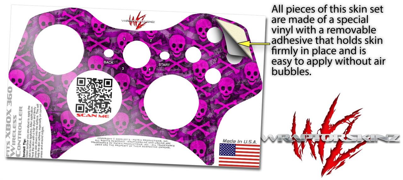 XBOX 360 Wireless Controller Decal Style Skin - Pink Skull Bones (CONTROLLER NOT INCLUDED)