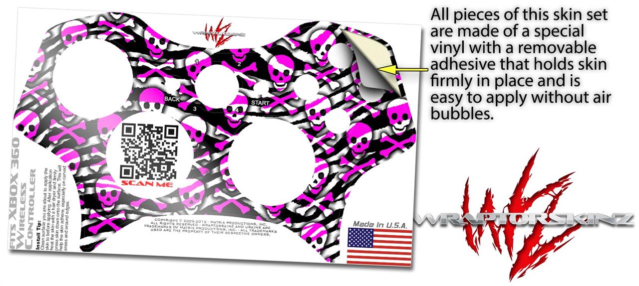 XBOX 360 Wireless Controller Decal Style Skin - Zebra Pink Skulls (CONTROLLER NOT INCLUDED)