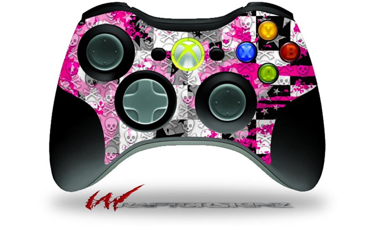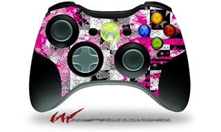 XBOX 360 Wireless Controller Decal Style Skin - Checker Skull Splatter Pink (CONTROLLER NOT INCLUDED)