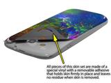 uSkins™ are self adhering vinyl skins that help prevent scratches and look great doing it. Unlike bulky silicon, plastic or metal cases and faceplates, uSkins are designed to be thin and very tough. uSkins are a composite of two layers of commercial grade materials. The bottom layer is a soft, flexible vinyl with a special removable adhesive that is easily positioned, applied without air bubbles, and effortlessly removed without leaving a sticky residue. Next we print the bottom layer with UV protected, fade resistant inks that deliver superb photo quality designs in vibrant colors. Finally we bond a professional grade laminate over the entire skin adding a glossy protective finish.