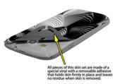 uSkins™ are self adhering vinyl skins that help prevent scratches and look great doing it. Unlike bulky silicon, plastic or metal cases and faceplates, uSkins are designed to be thin and very tough. uSkins are a composite of two layers of commercial grade materials. The bottom layer is a soft, flexible vinyl with a special removable adhesive that is easily positioned, applied without air bubbles, and effortlessly removed without leaving a sticky residue. Next we print the bottom layer with UV protected, fade resistant inks that deliver superb photo quality designs in vibrant colors. Finally we bond a professional grade laminate over the entire skin adding a glossy protective finish.
