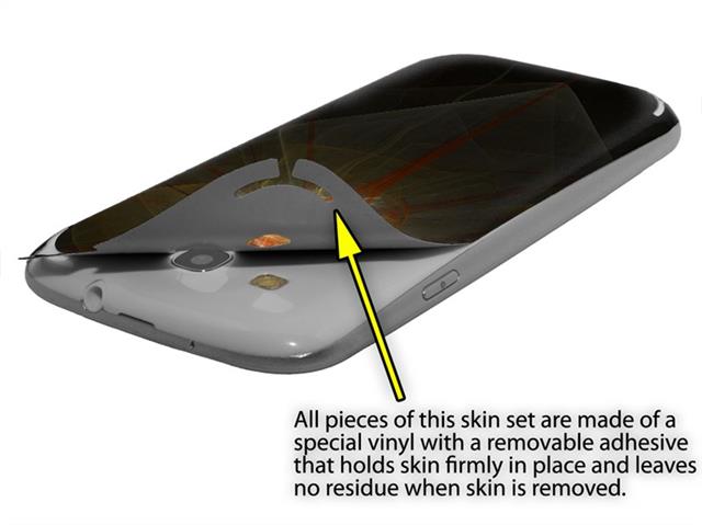 • Decal style vinyl skin covers front and back of Samsung Galaxy S III S3 phone.