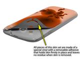 uSkins™ are self adhering vinyl skins that help prevent scratches and look great doing it. Unlike bulky silicon, plastic or metal cases and faceplates, uSkins are designed to be thin and very tough. uSkins are a composite of two layers of commercial grade materials. The bottom layer is a soft, flexible vinyl with a special removable adhesive that is easily positioned, applied without air bubbles, and effortlessly removed without leaving a sticky residue. Next we print the bottom layer with UV protected, fade resistant inks that deliver superb photo quality designs in vibrant colors. Finally we bond a professional grade laminate over the entire skin adding a glossy protective finish.