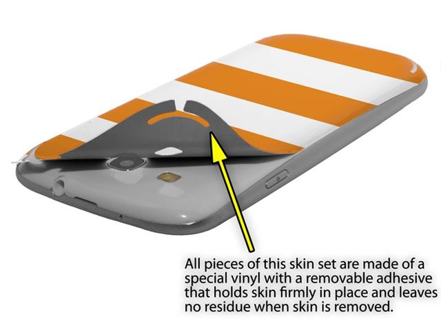 • Decal style vinyl skin covers front and back of Samsung Galaxy S III S3 phone.