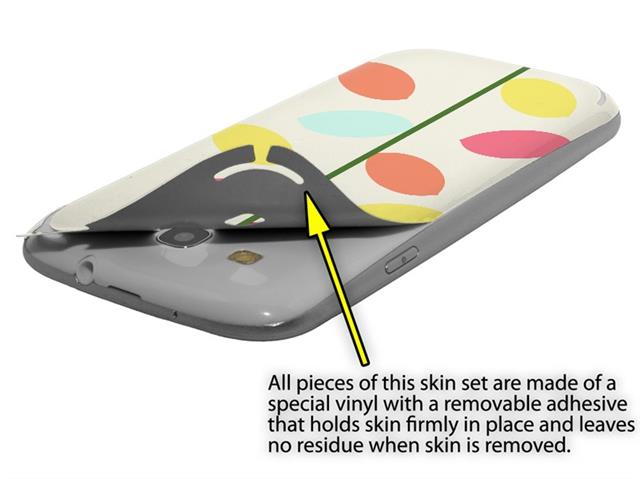 • Decal style vinyl skin covers front and back of Samsung Galaxy S III S3 phone.