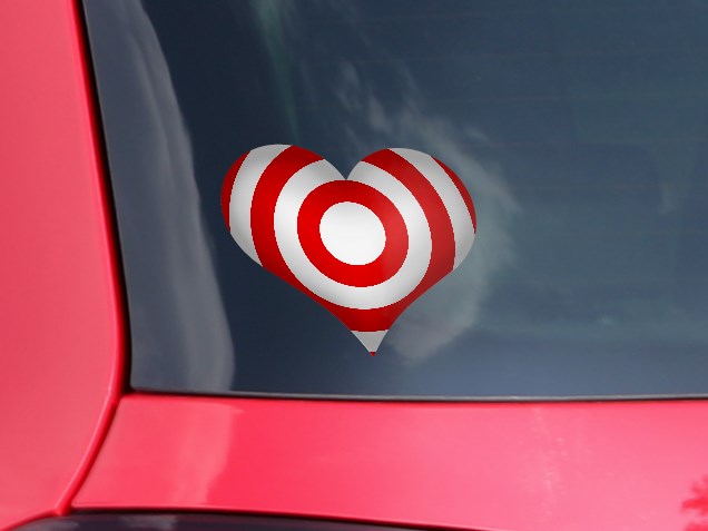 Bullseye Red and White - I Heart Love Car Window Decal 6.5 x 5.5 inches