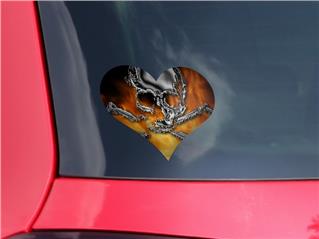 Chrome Skull on Fire - I Heart Love Car Window Decal 6.5 x 5.5 inches