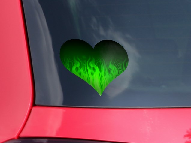 Fire Flames Green - I Heart Love Car Window Decal 6.5 x 5.5 inches