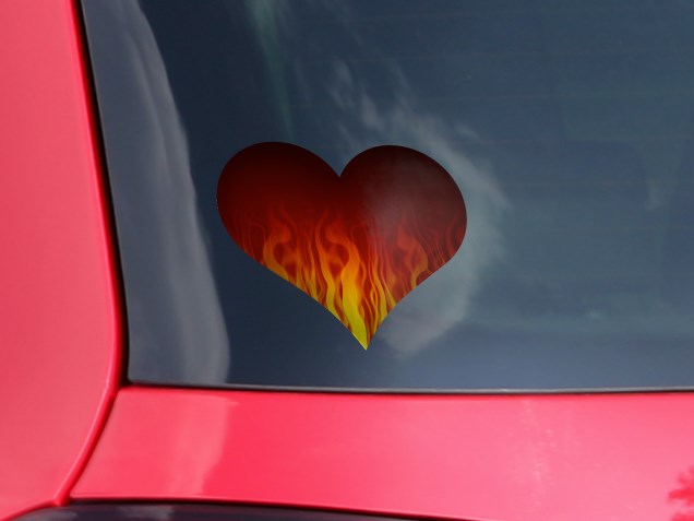 Fire Flames on Black - I Heart Love Car Window Decal 6.5 x 5.5 inches