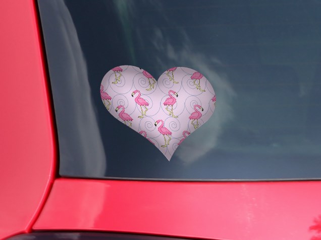 Flamingos on Pink - I Heart Love Car Window Decal 6.5 x 5.5 inches