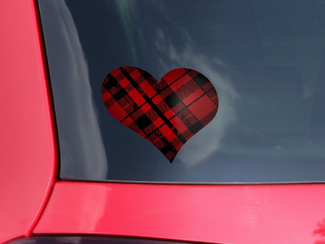 Red Plaid - I Heart Love Car Window Decal 6.5 x 5.5 inches