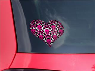 Pink Skulls and Stars - I Heart Love Car Window Decal 6.5 x 5.5 inches