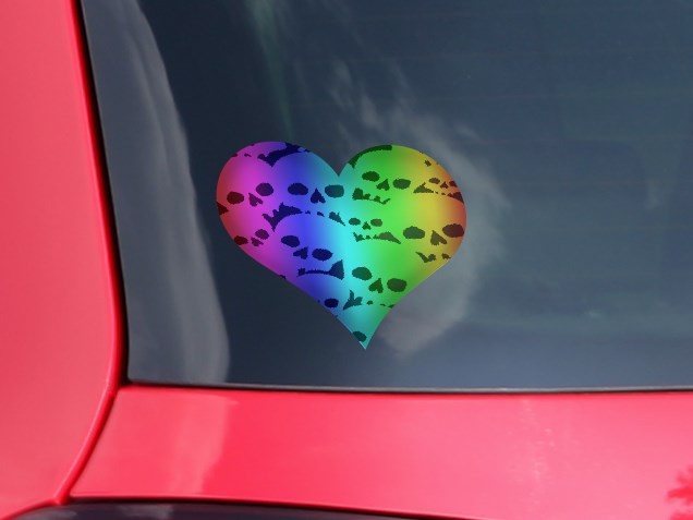 Rainbow Skull Collection - I Heart Love Car Window Decal 6.5 x 5.5 inches