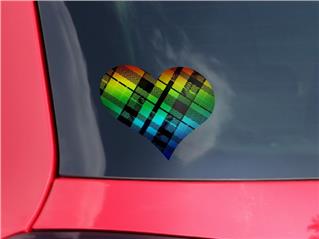 Rainbow Plaid - I Heart Love Car Window Decal 6.5 x 5.5 inches