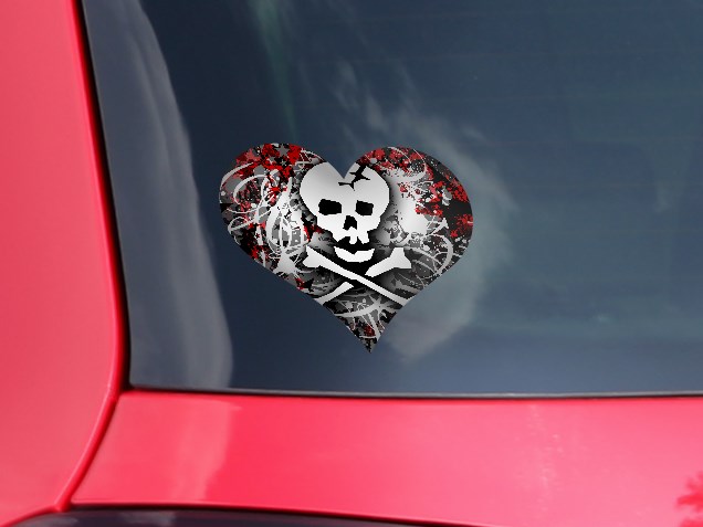 Skull Splatter - I Heart Love Car Window Decal 6.5 x 5.5 inches