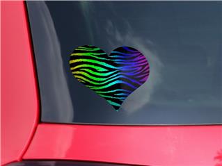 Rainbow Zebra - I Heart Love Car Window Decal 6.5 x 5.5 inches