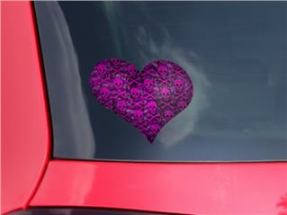 Pink Skull Bones - I Heart Love Car Window Decal 6.5 x 5.5 inches
