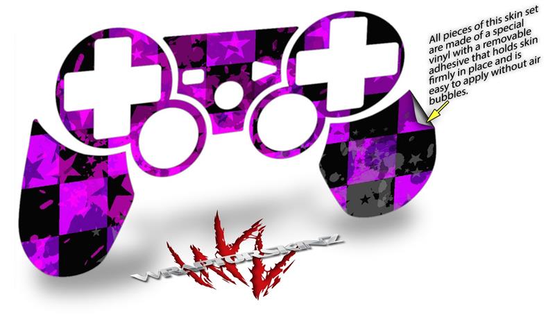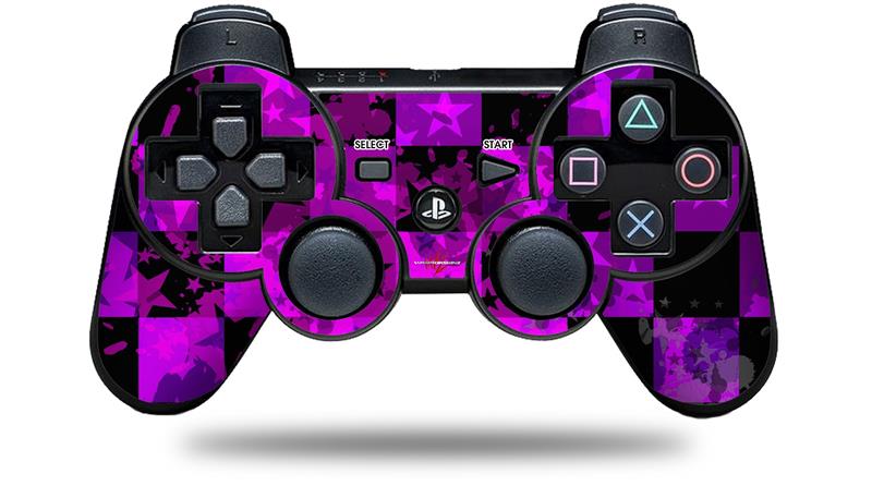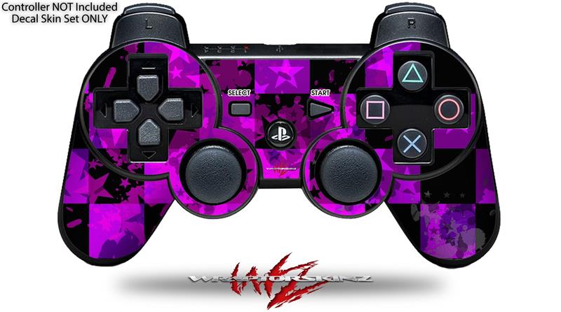 Sony PS3 Controller Decal Style Skin - Purple Star Checkerboard (CONTROLLER NOT INCLUDED)