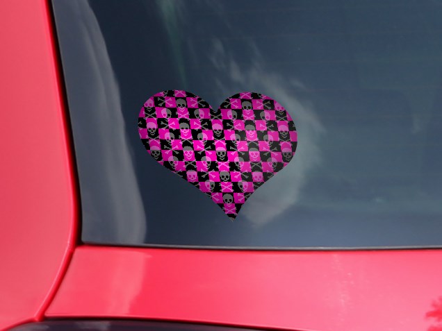 Skull and Crossbones Checkerboard - I Heart Love Car Window Decal 6.5 x 5.5 inches