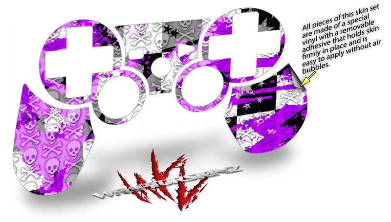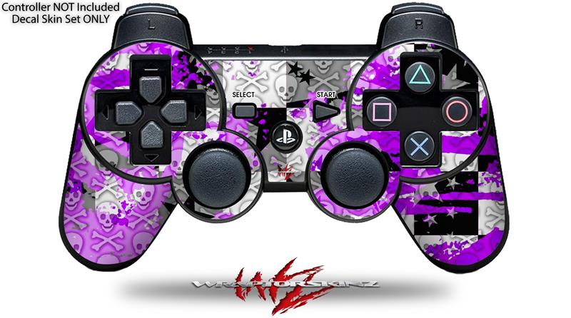 Sony PS3 Controller Decal Style Skin - Purple Checker Skull Splatter (CONTROLLER NOT INCLUDED)