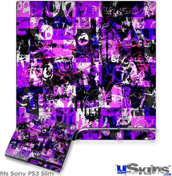 Decal Skin compatible with Sony PS3 Slim Purple Graffiti